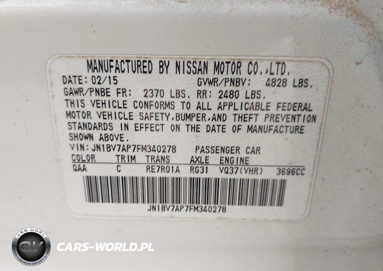 IAAI Nr: I-44503629 VIN: JN1BV7AP7FM340278 Port: Houston, TX