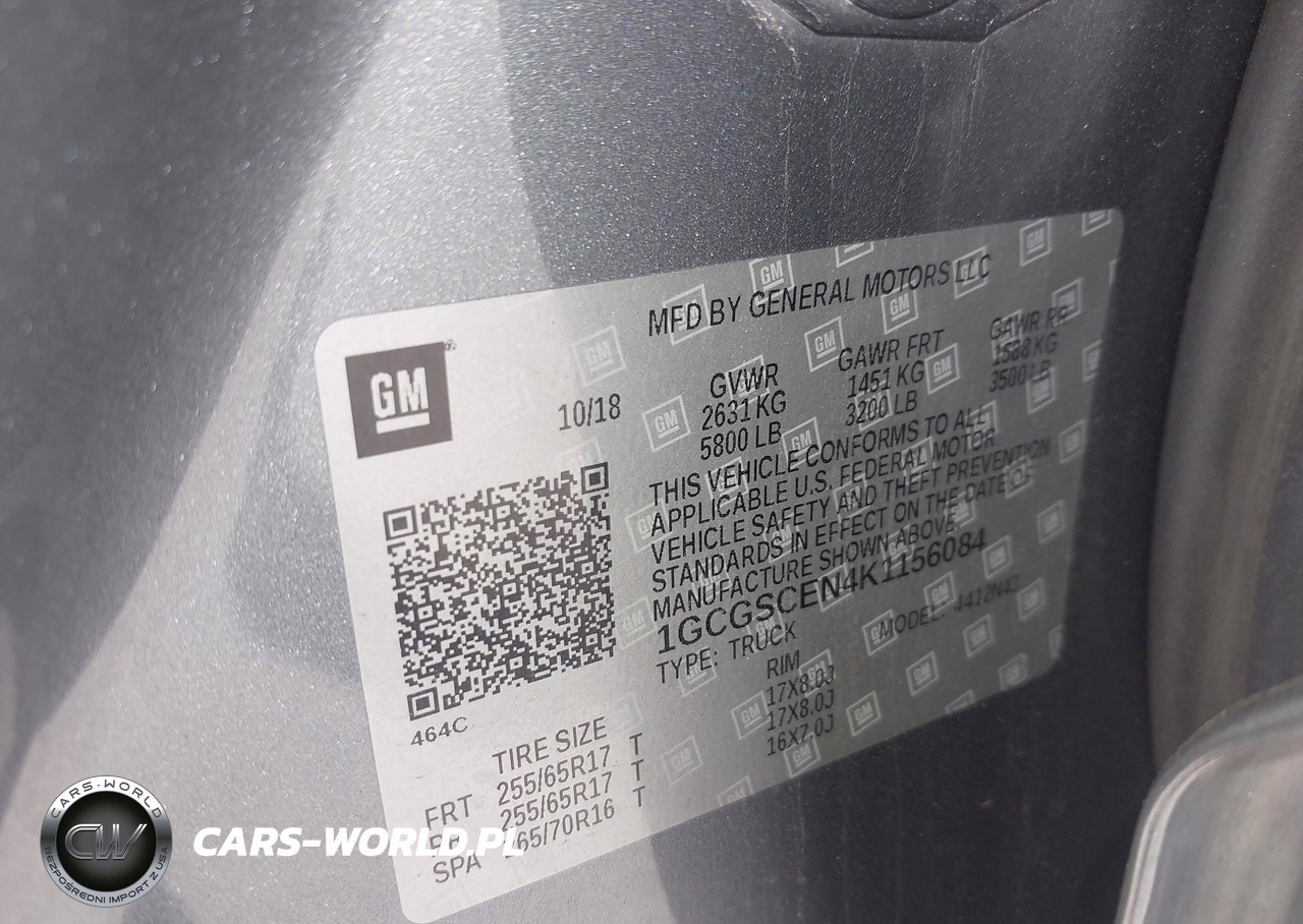 IAAI Nr: I-44503799 VIN: 1GCGSCEN4K1156084 Port: Los Angeles, CA