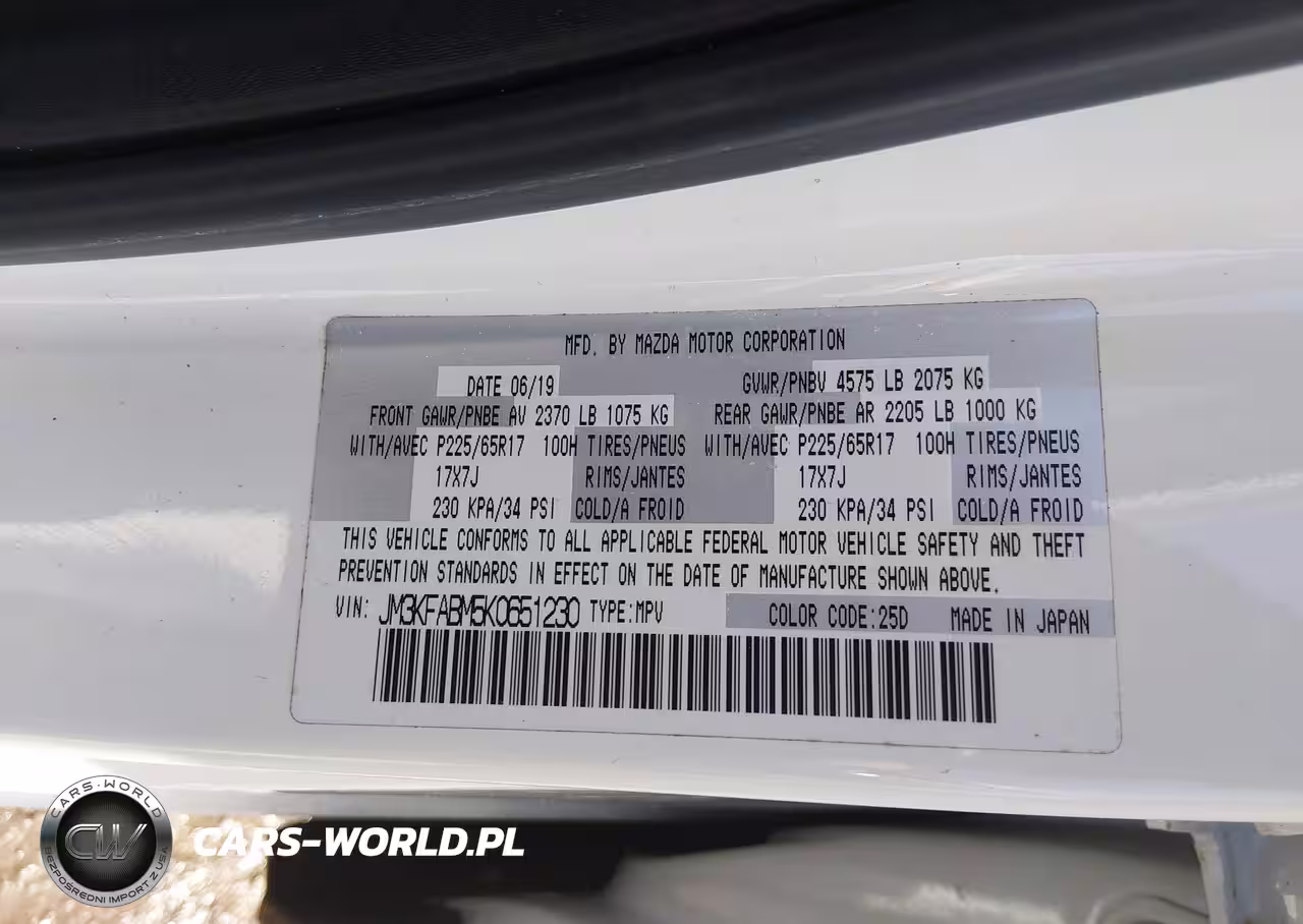 IAAI Nr: I-44504036 VIN: JM3KFABM5K0651230 Port: Elizabeth, NJ