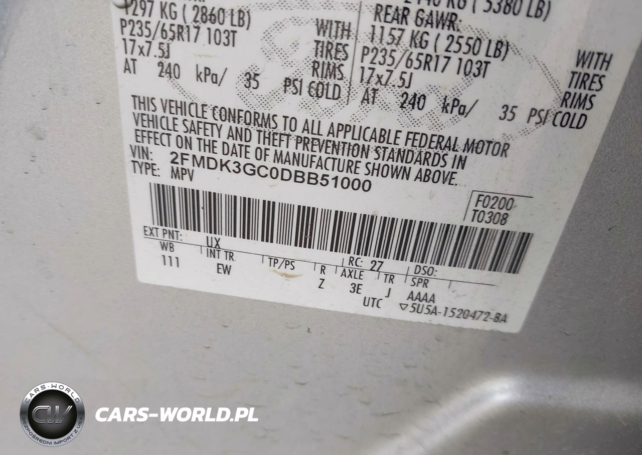 IAAI Nr: I-44504418 VIN: 2FMDK3GC0DBB51000 Port: Houston, TX
