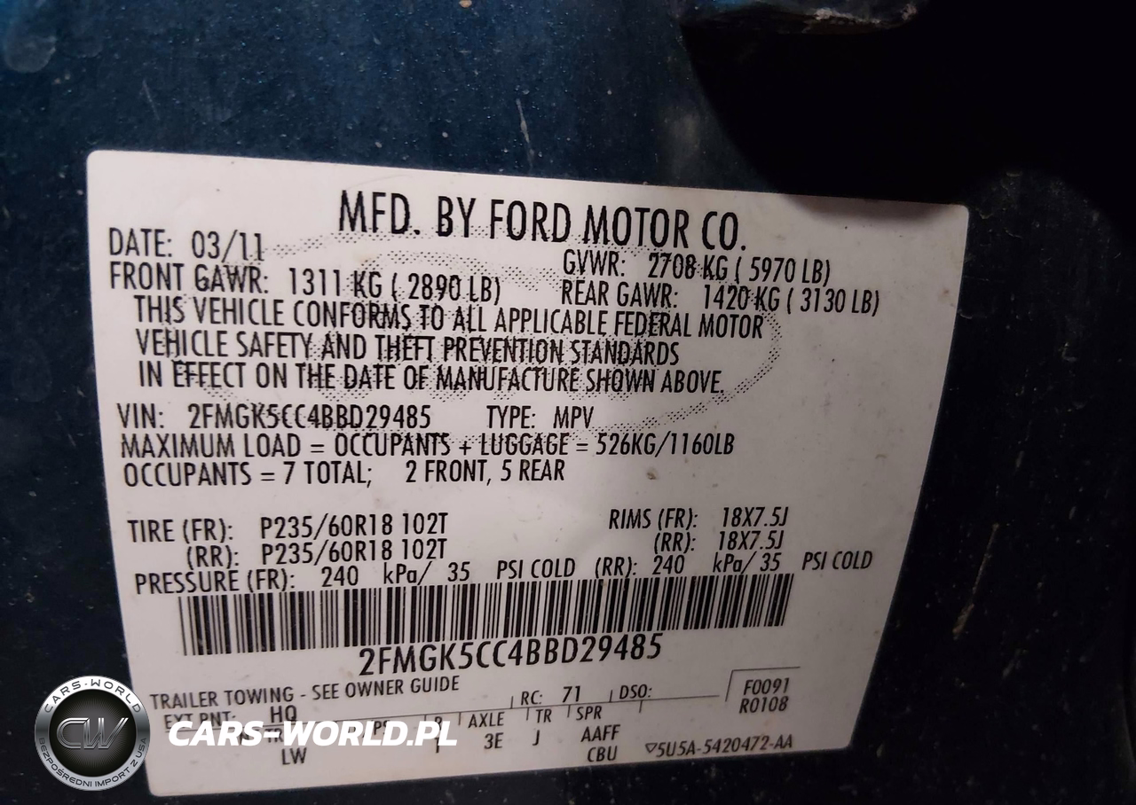 IAAI Nr: I-44504709 VIN: 2FMGK5CC4BBD29485 Port: Houston, TX
