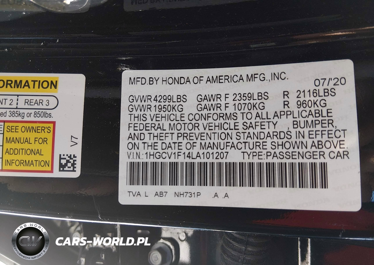 IAAI Nr: I-44504872 VIN: 1HGCV1F14LA101207 Port: Elizabeth, NJ