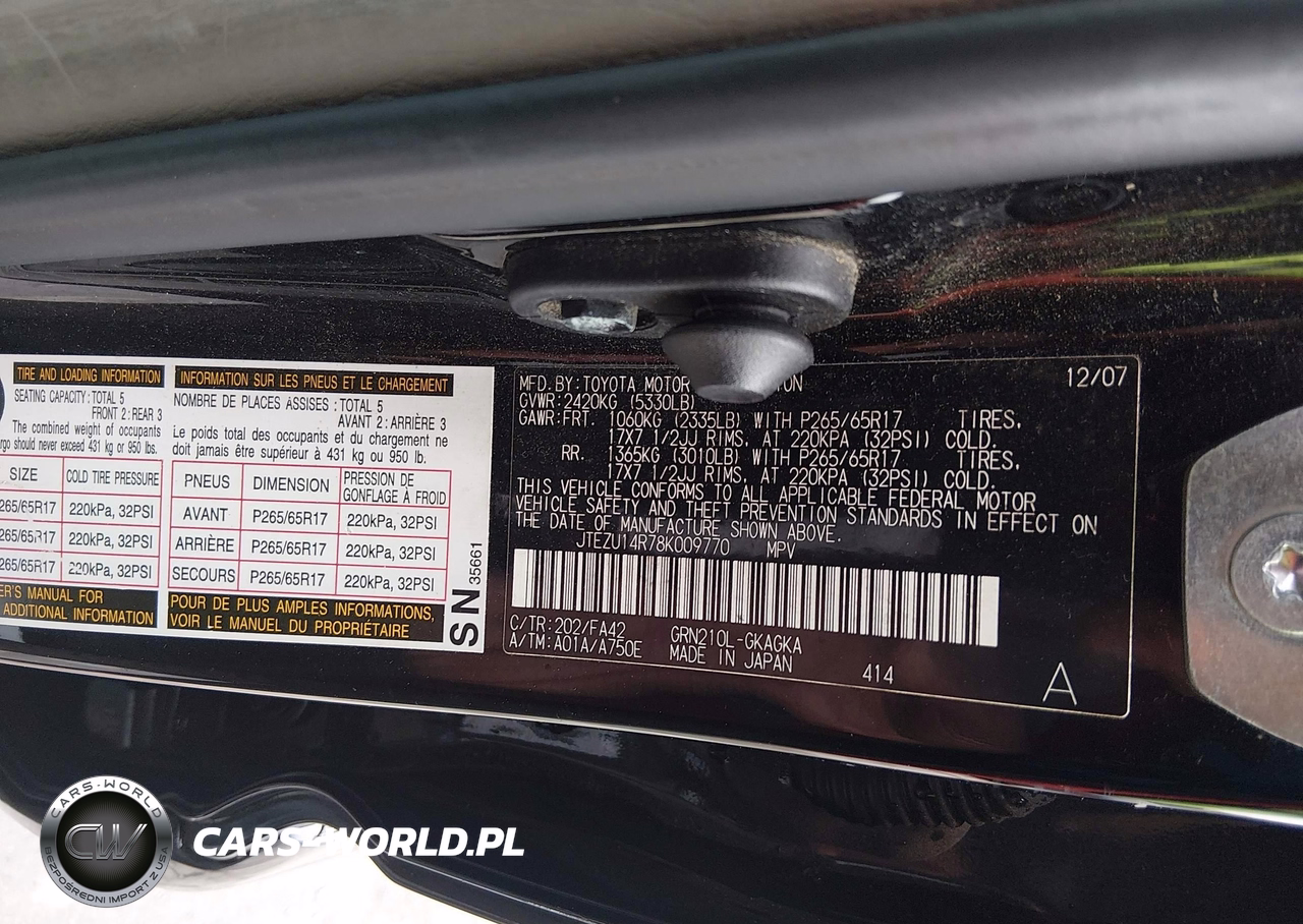 IAAI Nr: I-44505414 VIN: JTEZU14R78K009770 Port: Savannah, GA