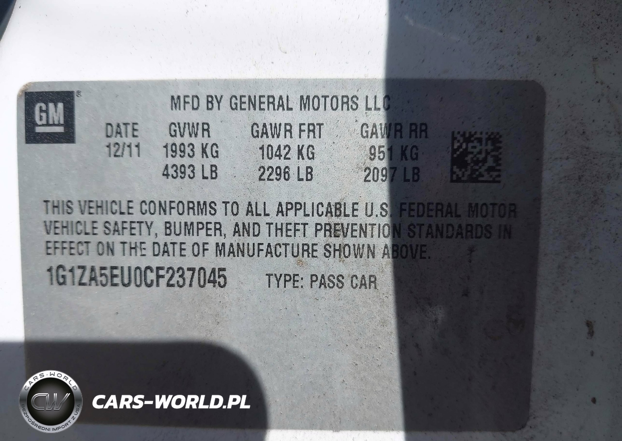 IAAI Nr: I-44505519 VIN: 1G1ZA5EU0CF237045 Port: Los Angeles, CA