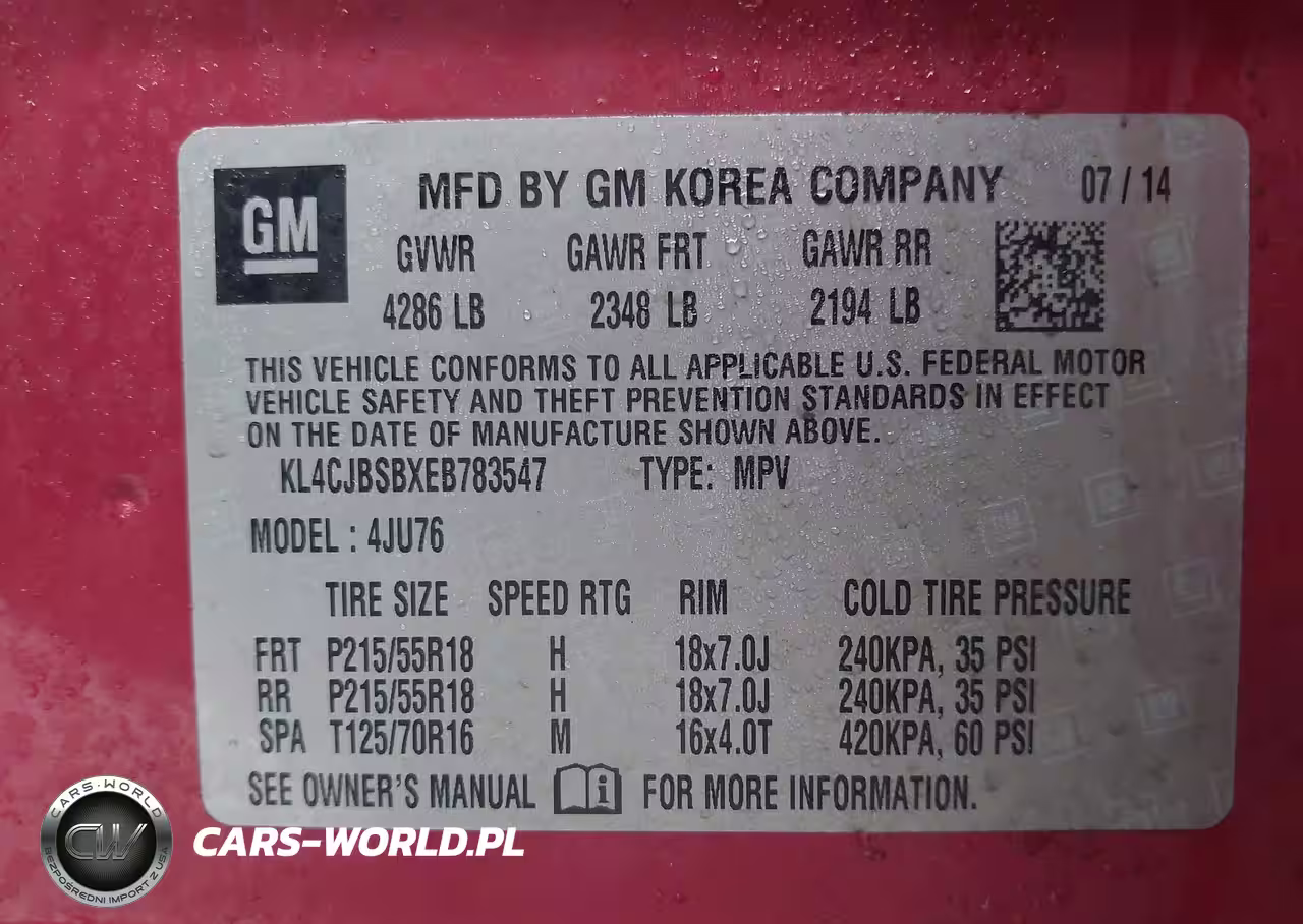 IAAI Nr: I-44506443 VIN: KL4CJBSBXEB783547 Port: Indianapolis, IN