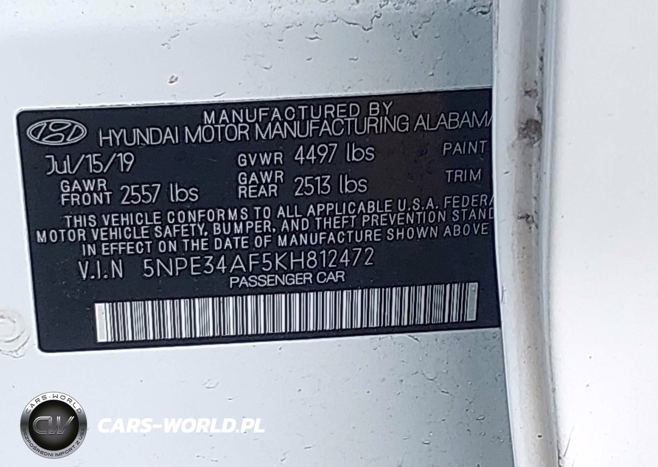 IAAI Nr: I-44506538 VIN: 5NPE34AF5KH812472 Port: Elizabeth, NJ