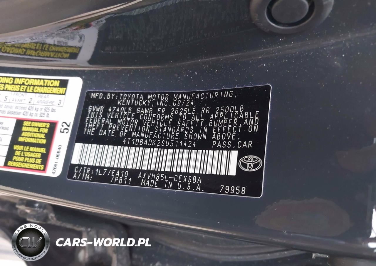 IAAI Nr: I-44506587 VIN: 4T1DBADK2SU511424 Port: Elizabeth, NJ