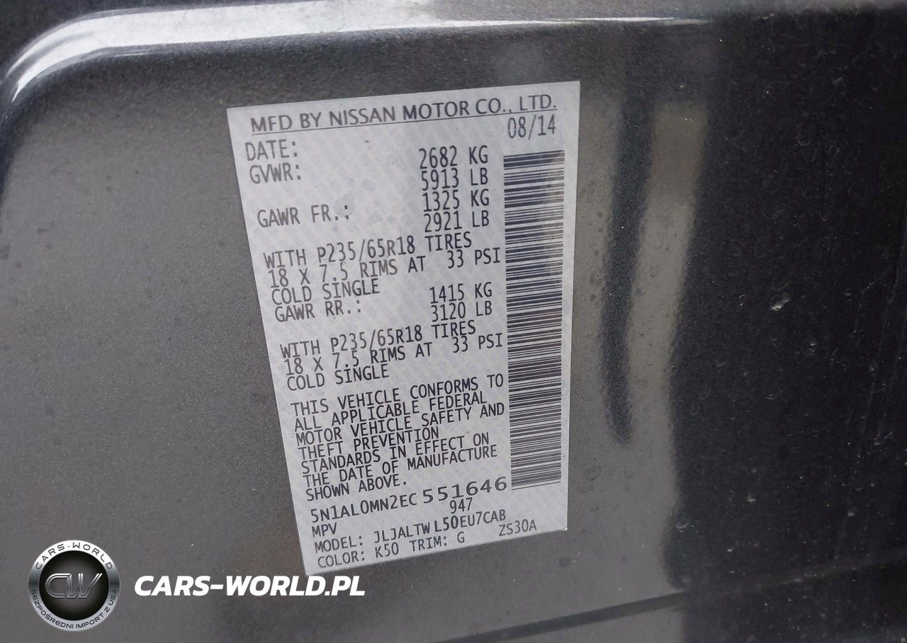 IAAI Nr: I-44507177 VIN: 5N1AL0MN2EC551646 Port: Houston, TX