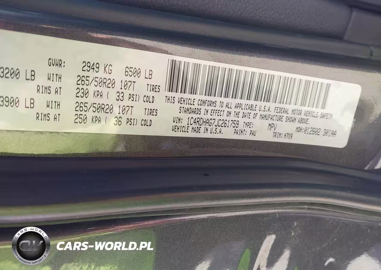IAAI Nr: I-44508097 VIN: 1C4RDHAG7JC261759 Port: Houston, TX