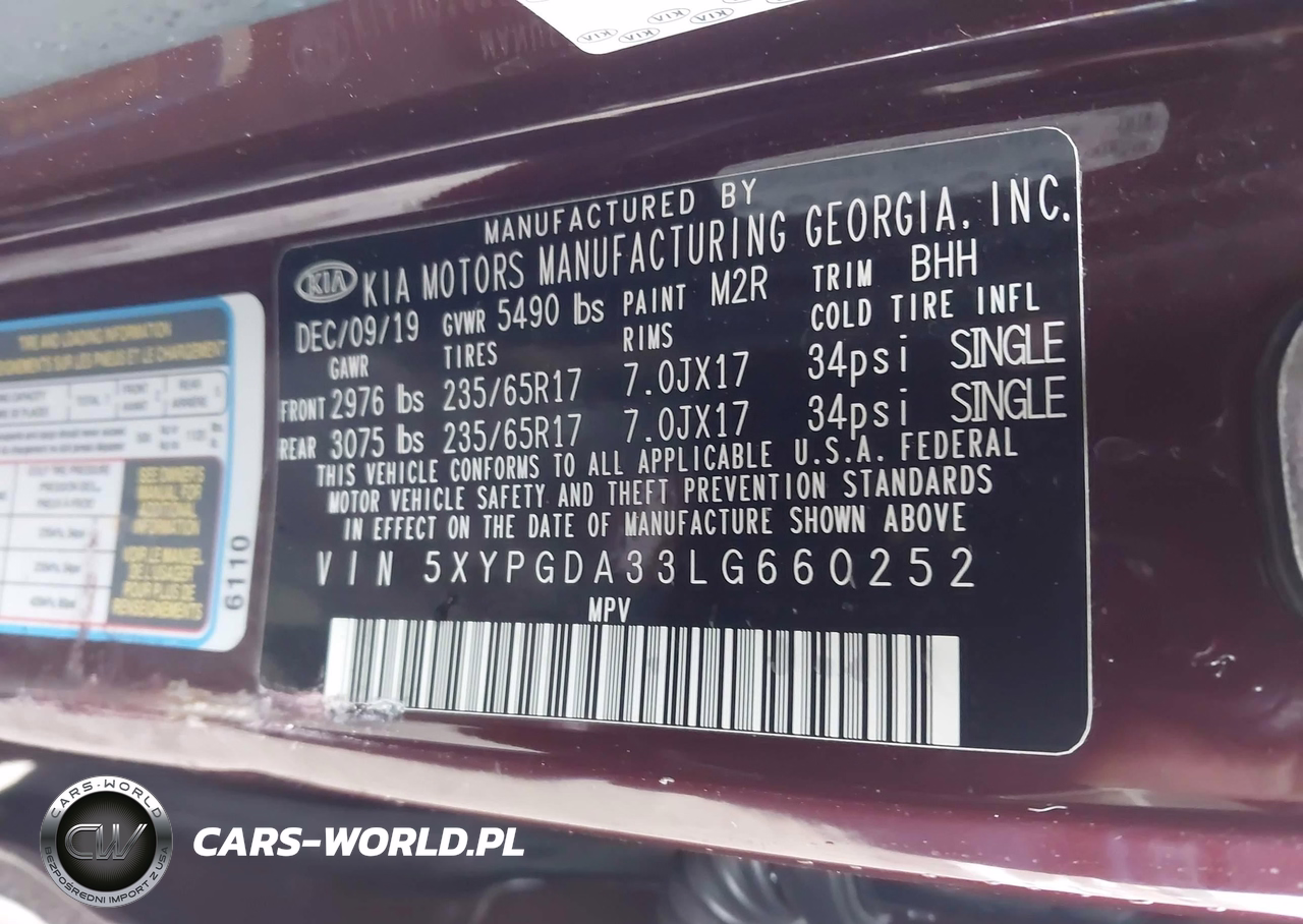 IAAI Nr: I-44508218 VIN: 5XYPGDA33LG660252 Port: Elizabeth, NJ