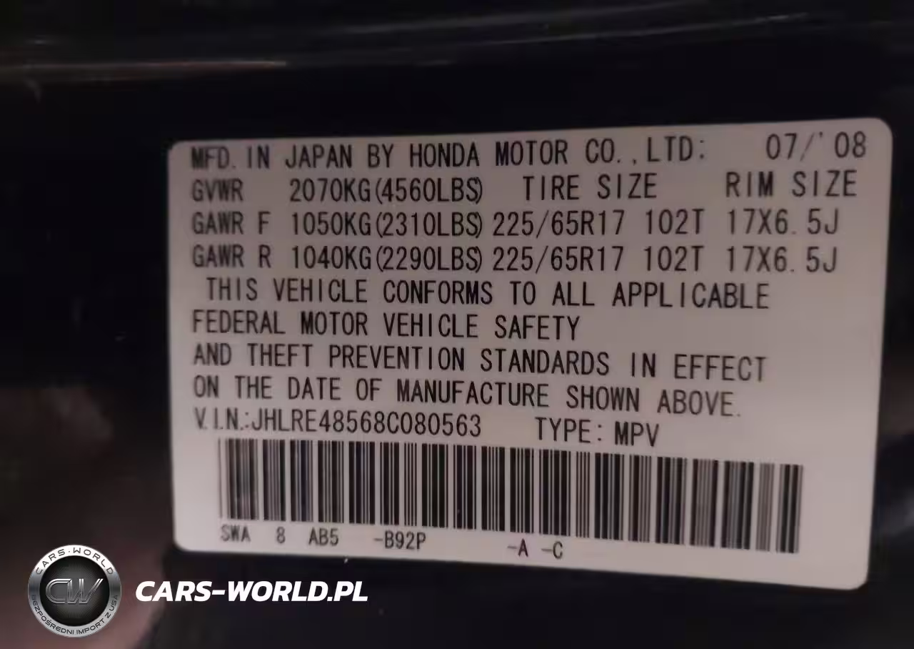 IAAI Nr: I-44508952 VIN: JHLRE48568C080563 Port: Indianapolis, IN