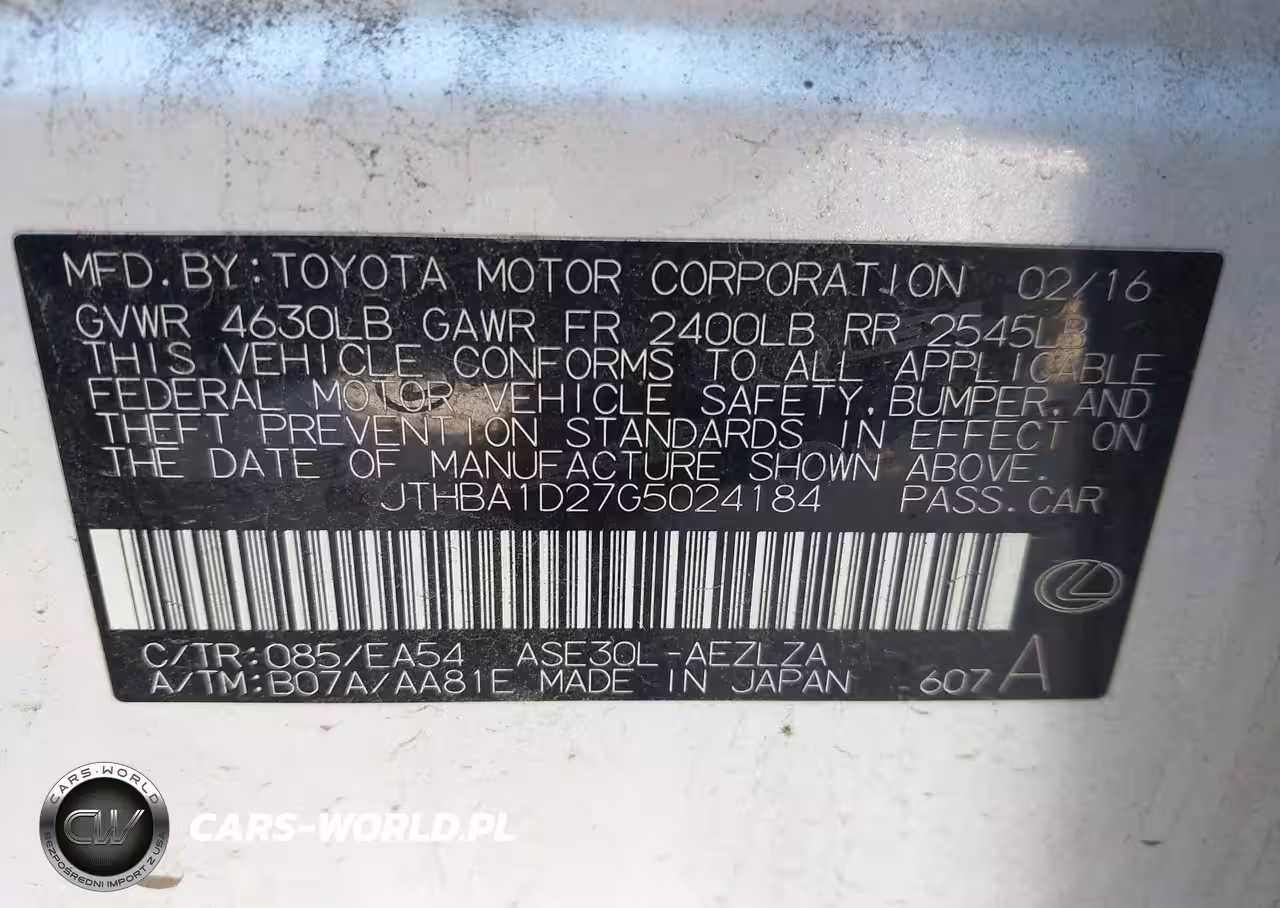 IAAI Nr: I-44509119 VIN: JTHBA1D27G5024184 Port: Los Angeles, CA