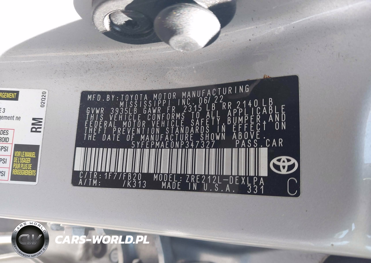 IAAI Nr: I-44509210 VIN: 5YFEPMAE0NP347327 Port: Elizabeth, NJ