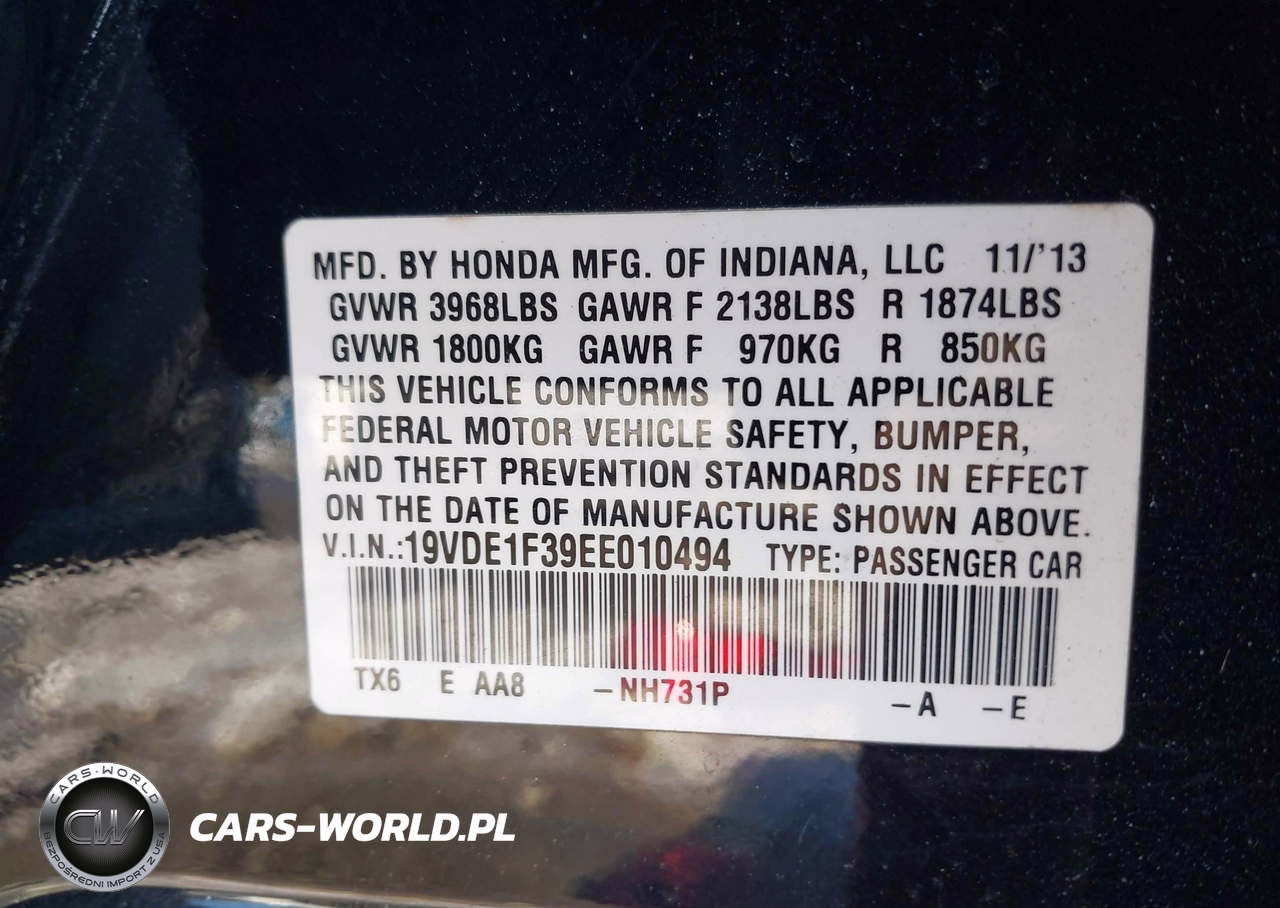 IAAI Nr: I-44509410 VIN: 19VDE1F39EE010494 Port: Elizabeth, NJ