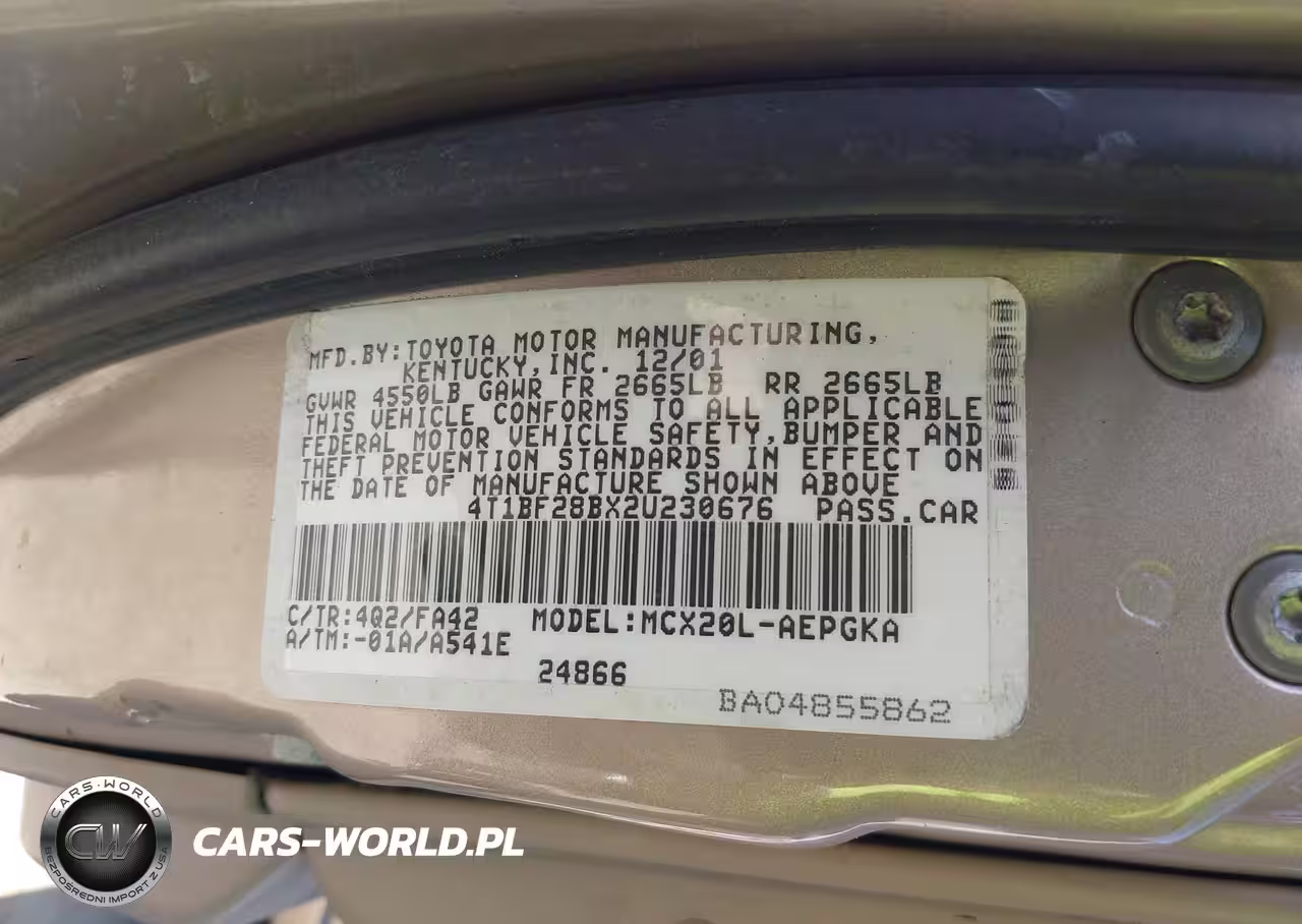 IAAI Nr: I-44509478 VIN: 4T1BF28BX2U230676 Port: Houston, TX