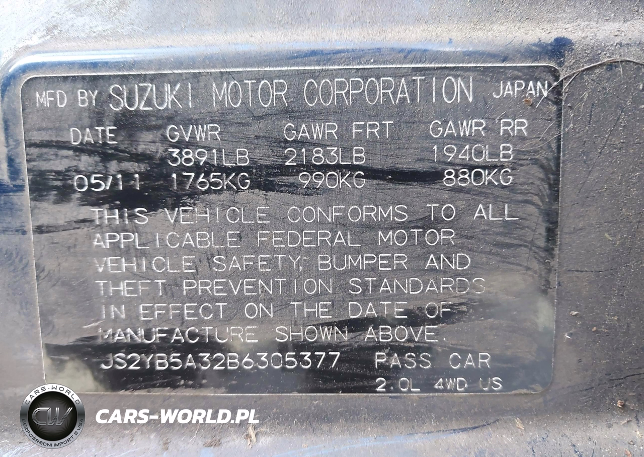 IAAI Nr: I-44511323 VIN: JS2YB5A32B6305377 Port: Los Angeles, CA