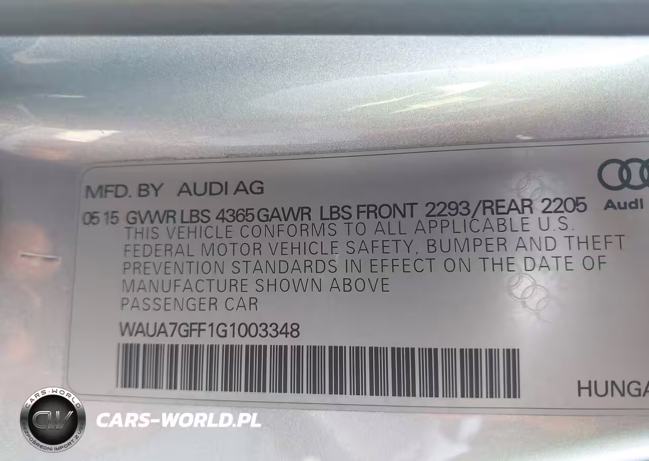 IAAI Nr: I-44511818 VIN: WAUA7GFF1G1003348 Port: Los Angeles, CA
