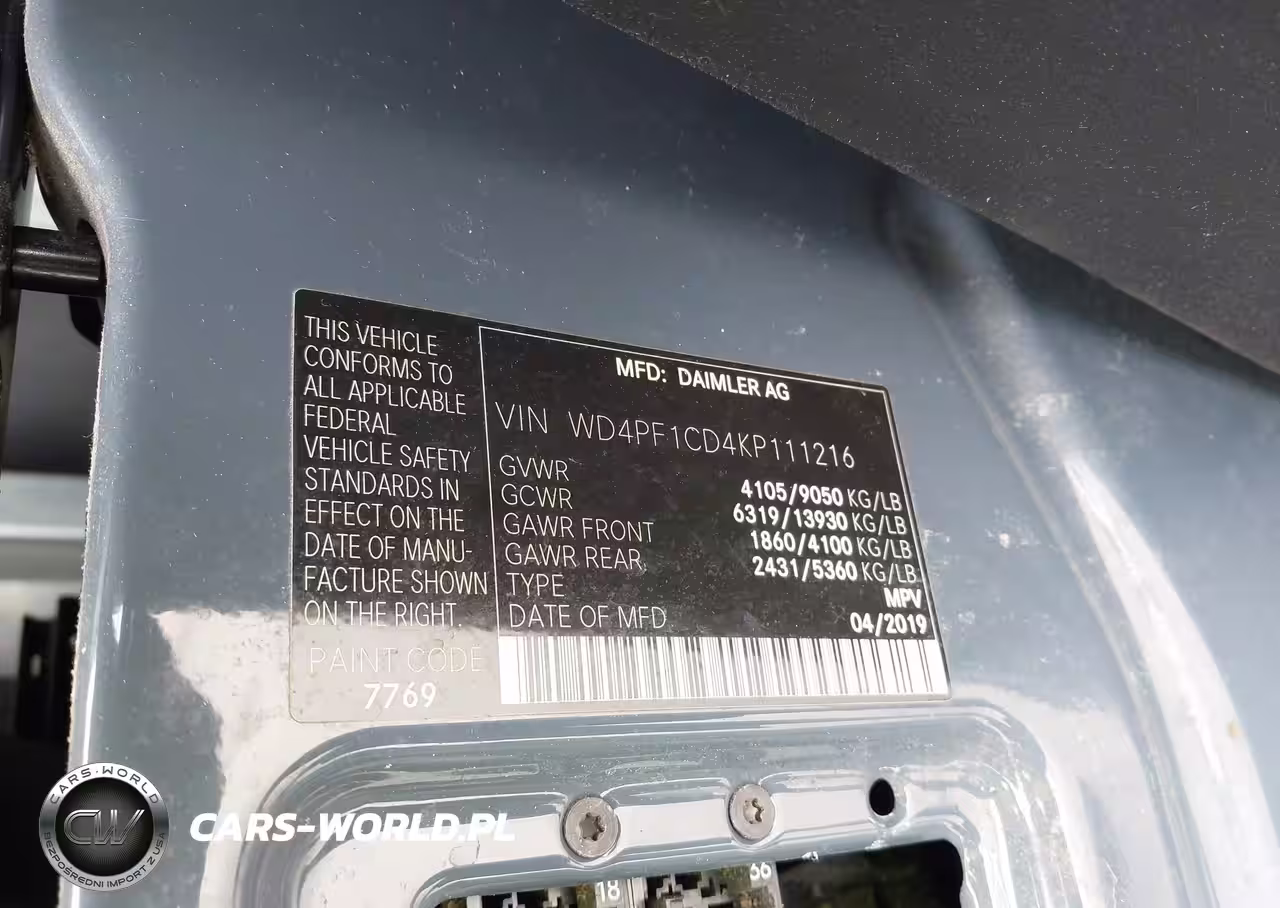 IAAI Nr: I-44512078 VIN: WD4PF1CD4KP111216 Port: Savannah, GA