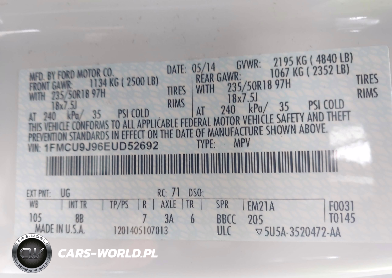 IAAI Nr: I-44512271 VIN: 1FMCU9J96EUD52692 Port: Savannah, GA
