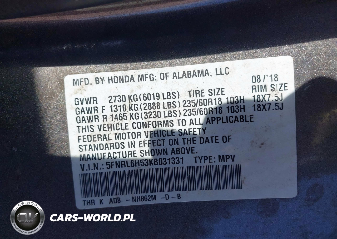 IAAI Nr: I-44512823 VIN: 5FNRL6H53KB031331 Port: Houston, TX