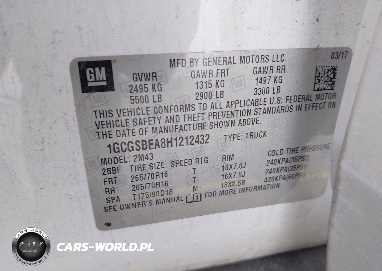 IAAI Nr: I-44513339 VIN: 1GCGSBEA8H1212432 Port: Savannah, GA