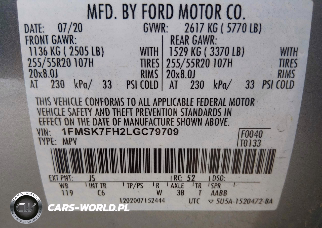 IAAI Nr: I-44513425 VIN: 1FMSK7FH2LGC79709 Port: Savannah, GA