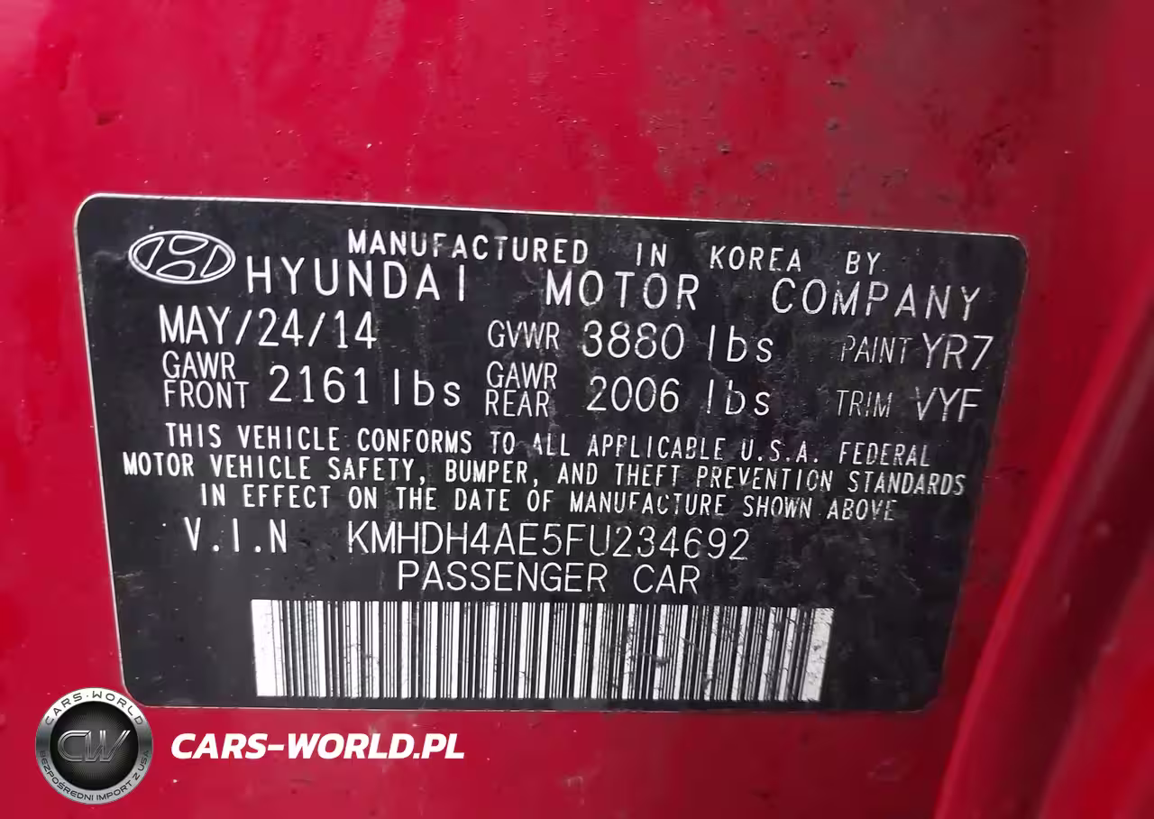 IAAI Nr: I-44515329 VIN: KMHDH4AE5FU234692 Port: Elizabeth, NJ