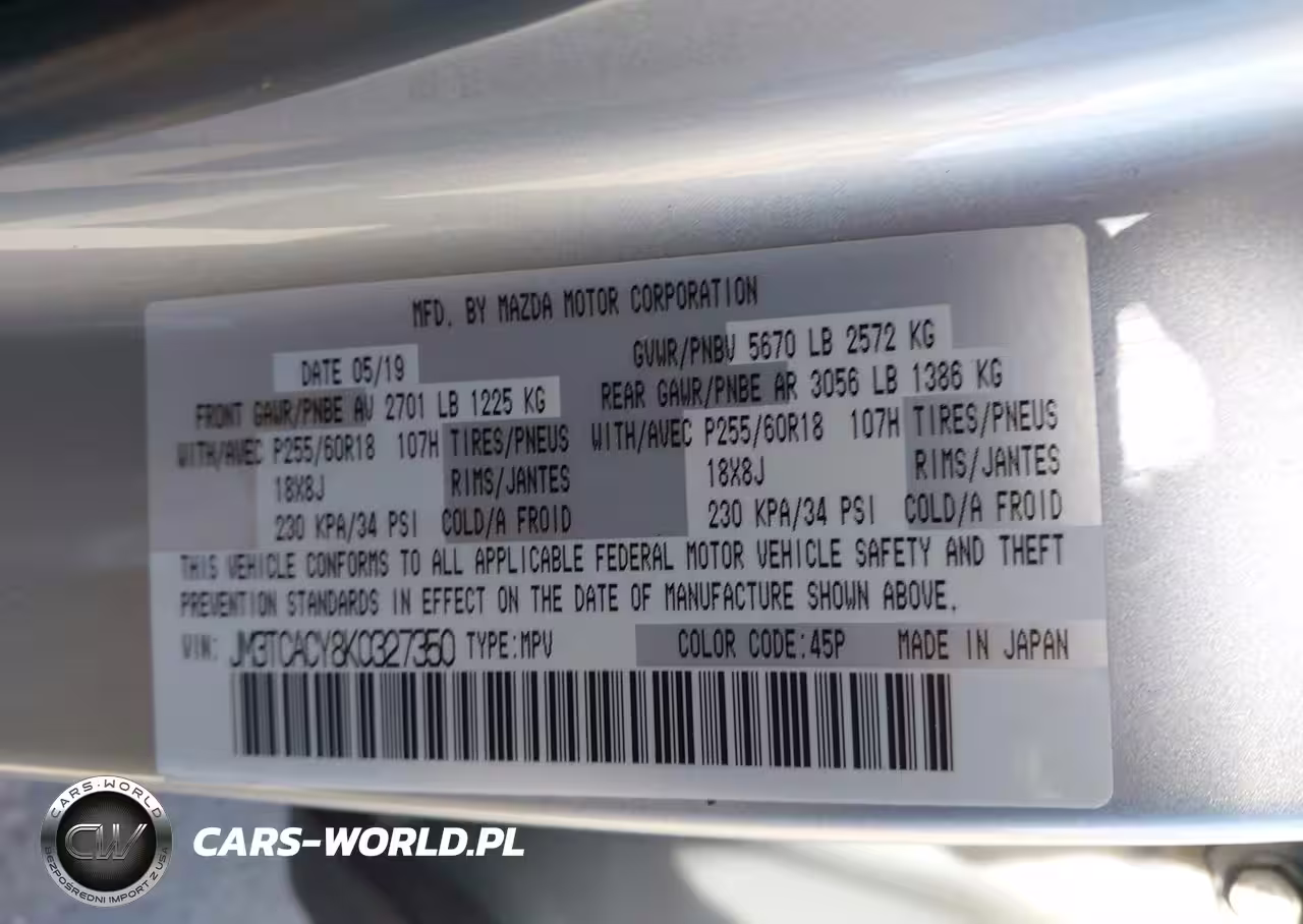 IAAI Nr: I-44515572 VIN: JM3TCACY8K0327350 Port: Los Angeles, CA