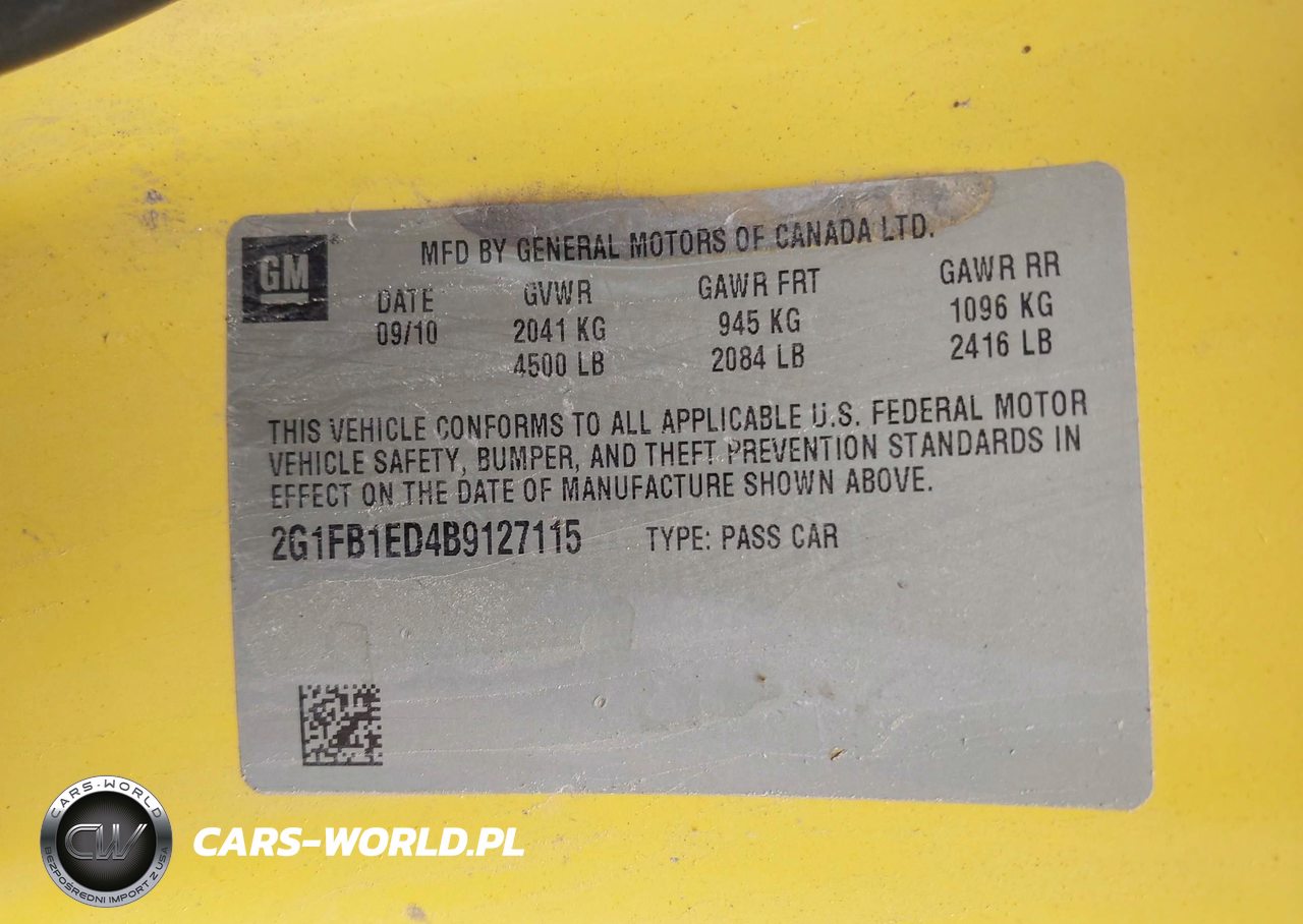 IAAI Nr: I-44515605 VIN: 2G1FB1ED4B9127115 Port: Houston, TX