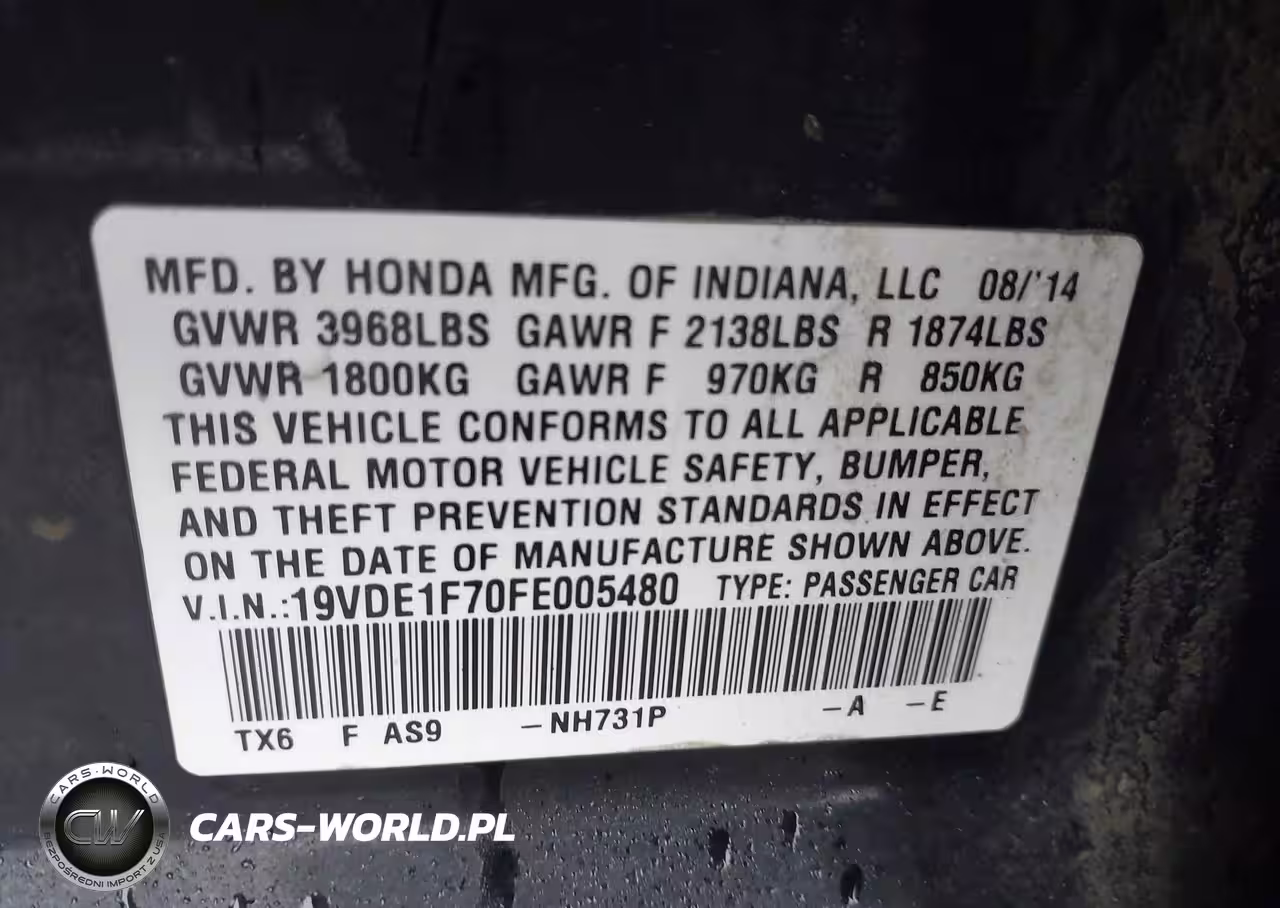 IAAI Nr: I-44516190 VIN: 19VDE1F70FE005480 Port: Indianapolis, IN