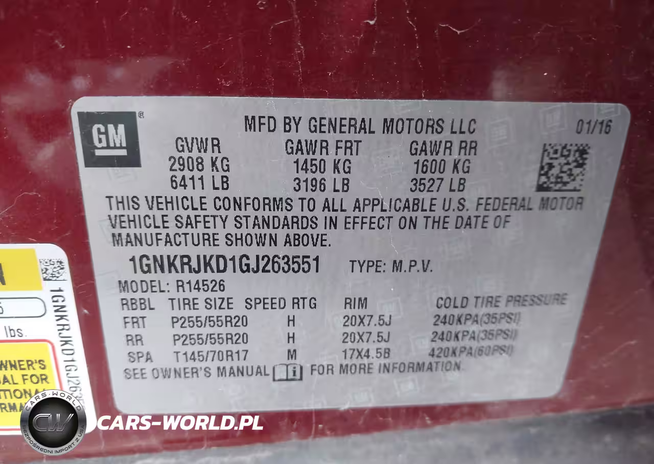 IAAI Nr: I-44516219 VIN: 1GNKRJKD1GJ263551 Port: Indianapolis, IN
