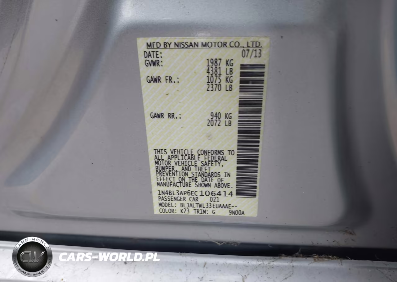IAAI Nr: I-44516913 VIN: 1N4BL3AP6EC106414 Port: Indianapolis, IN