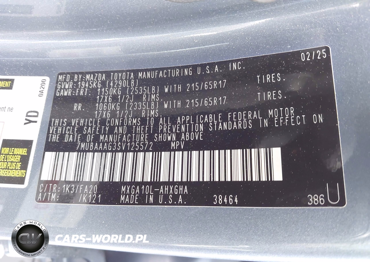 IAAI Nr: I-44517213 VIN: 7MUBAAAG3SV125572 Port: Savannah, GA