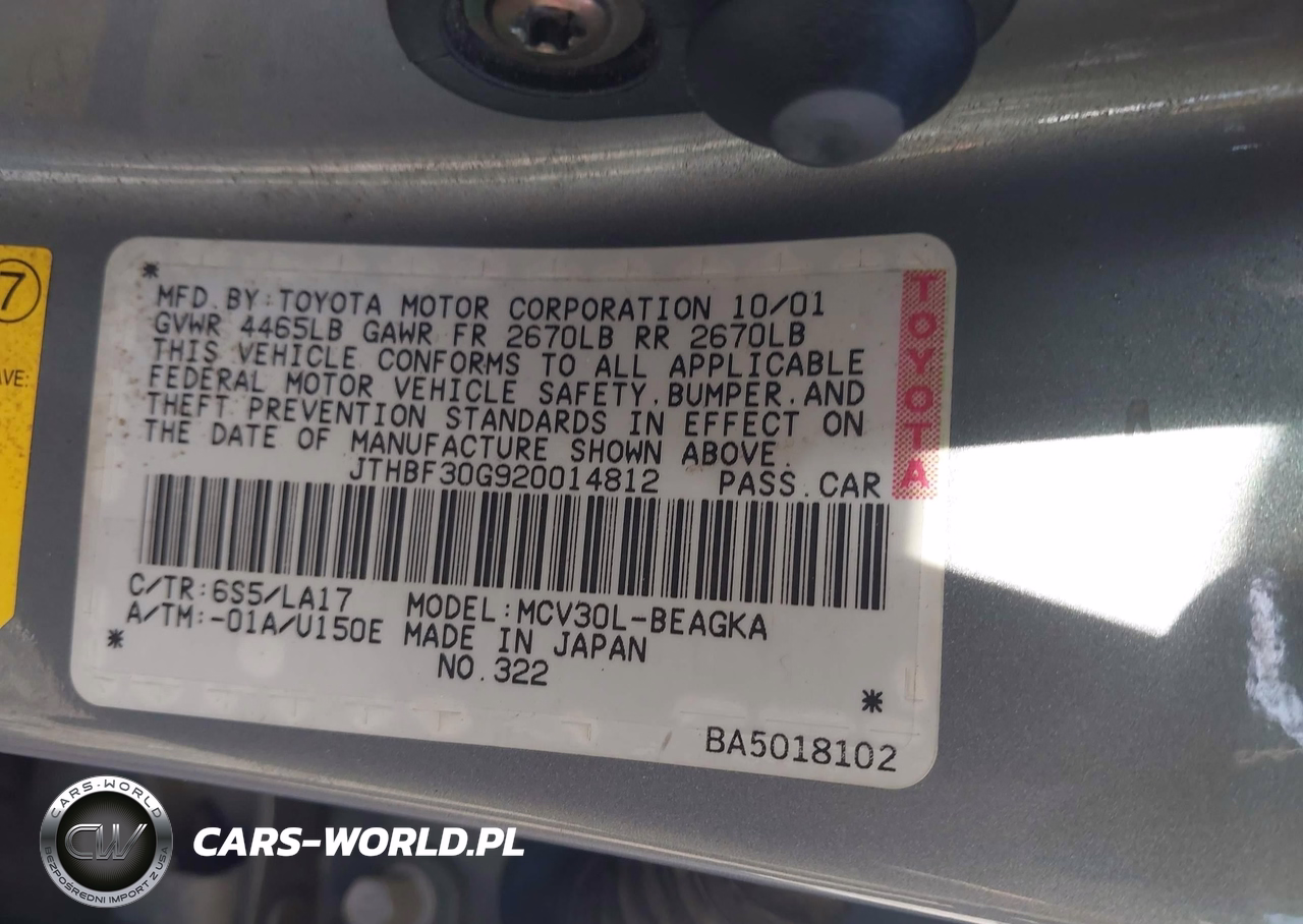 IAAI Nr: I-44517338 VIN: JTHBF30G920014812 Port: Savannah, GA