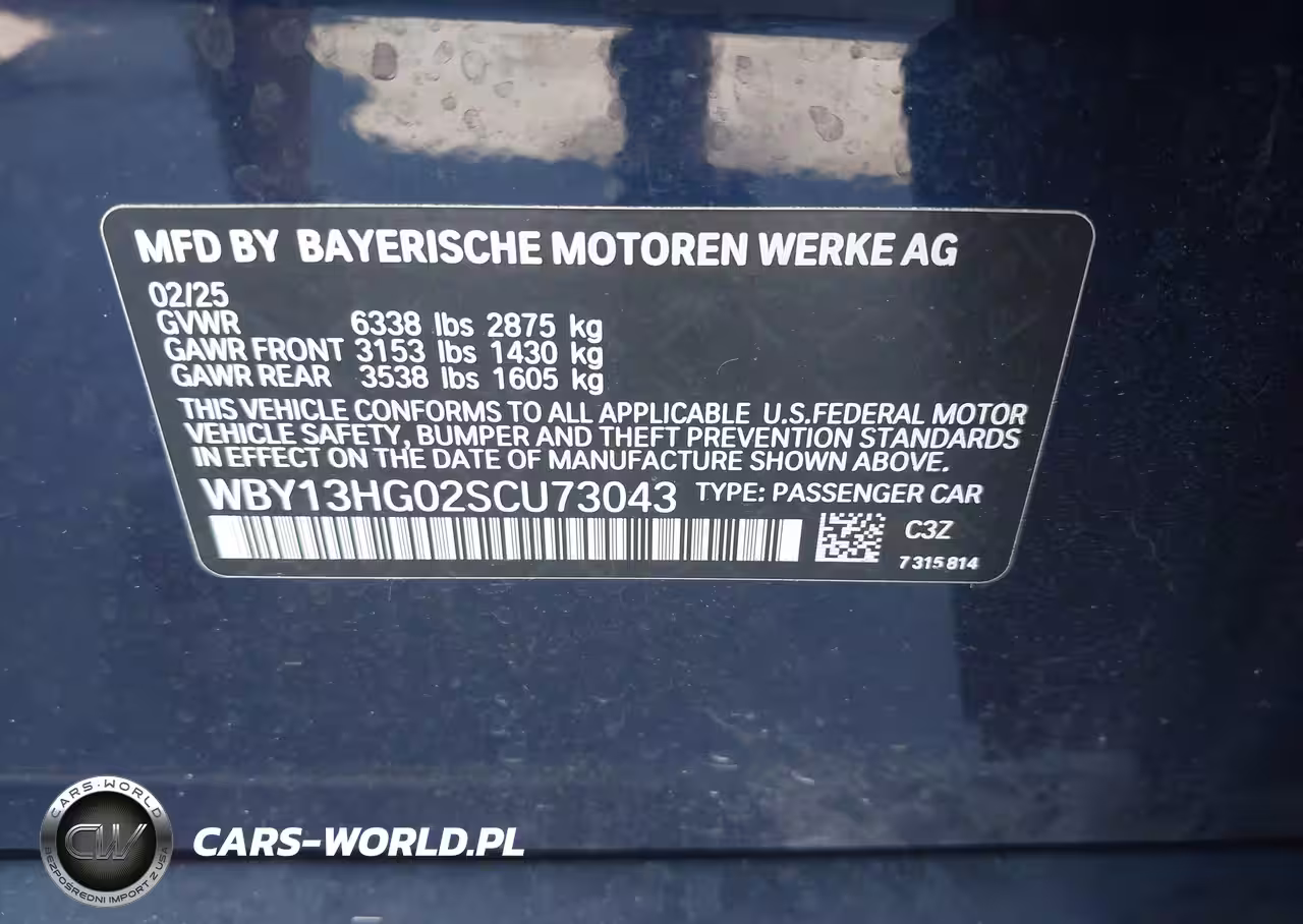 IAAI Nr: I-44517817 VIN: WBY13HG02SCU73043 Port: Savannah, GA