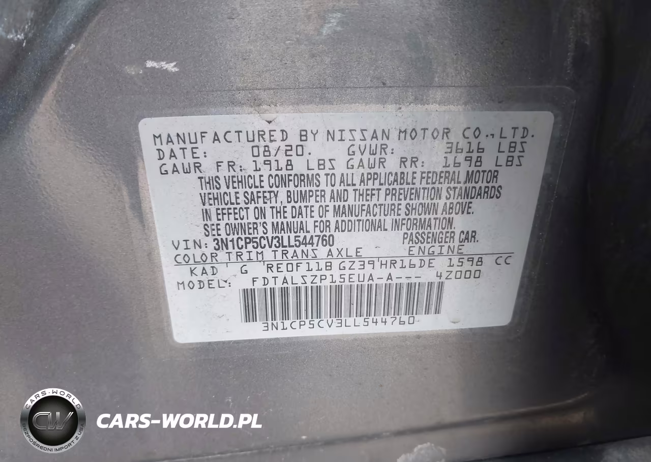 IAAI Nr: I-44518862 VIN: 3N1CP5CV3LL544760 Port: Indianapolis, IN
