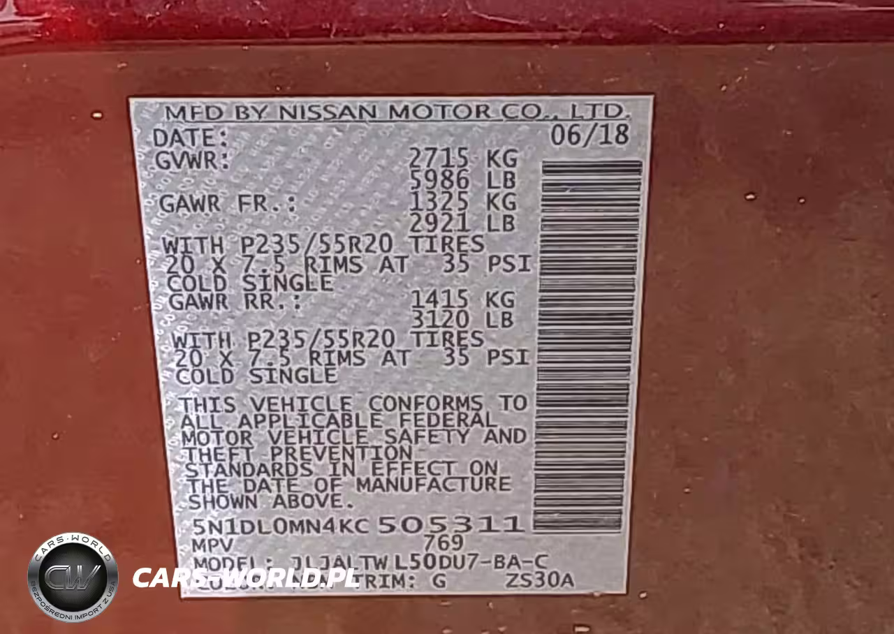 IAAI Nr: I-44520177 VIN: 5N1DL0MN4KC505311 Port: Savannah, GA