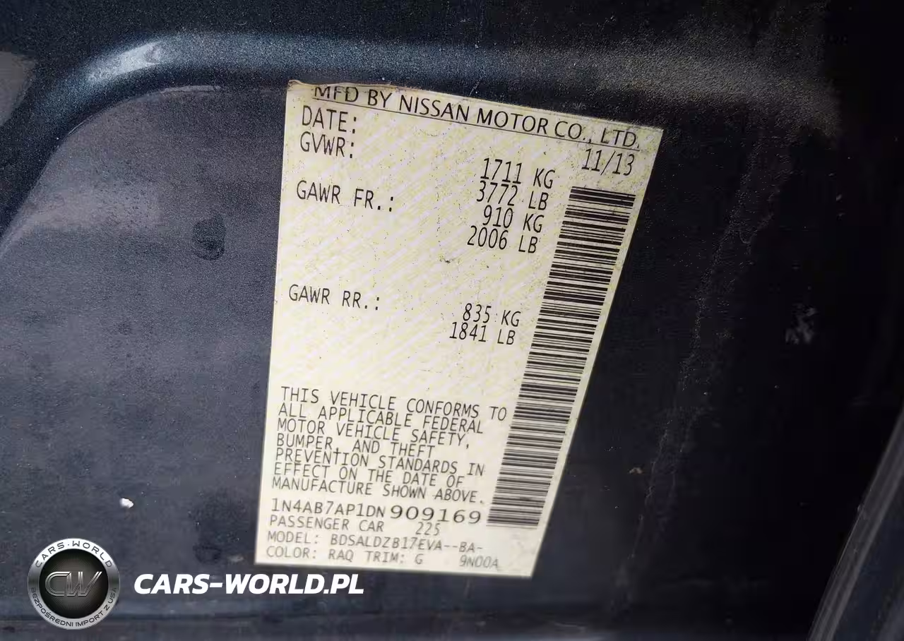 IAAI Nr: I-44520295 VIN: 1N4AB7AP1DN909169 Port: Elizabeth, NJ
