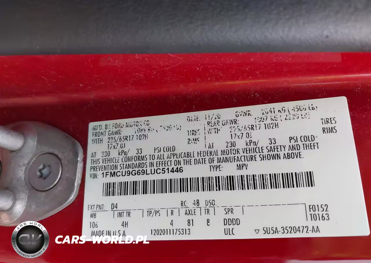 IAAI Nr: I-44520480 VIN: 1FMCU9G69LUC51446 Port: Indianapolis, IN