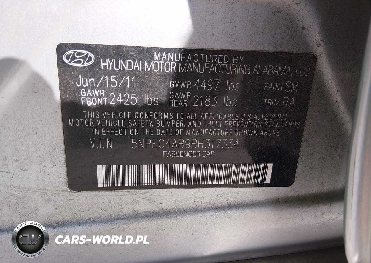 IAAI Nr: I-44520607 VIN: 5NPEC4AB9BH317334 Port: Savannah, GA