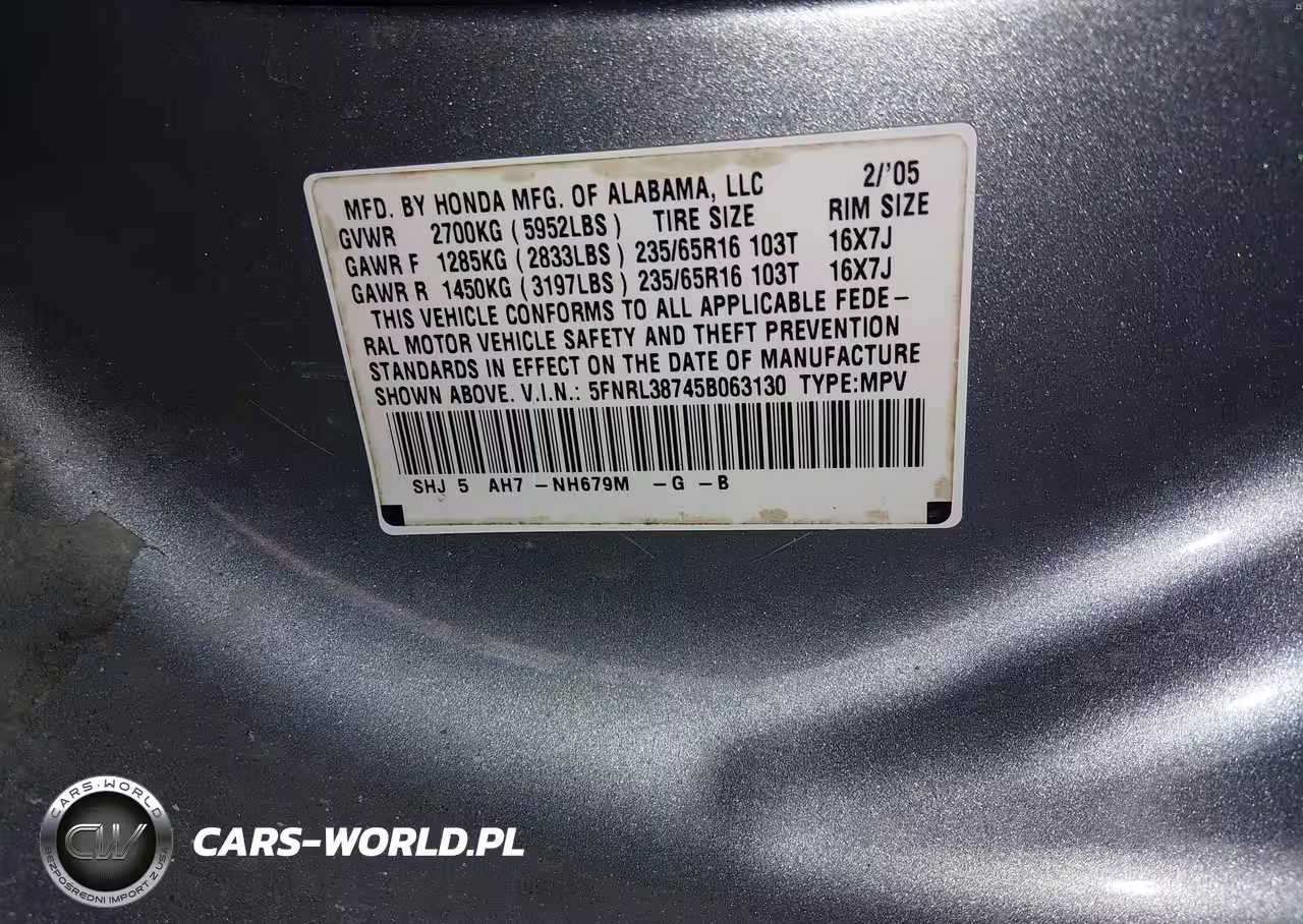 IAAI Nr: I-44520677 VIN: 5FNRL38745B063130 Port: Savannah, GA