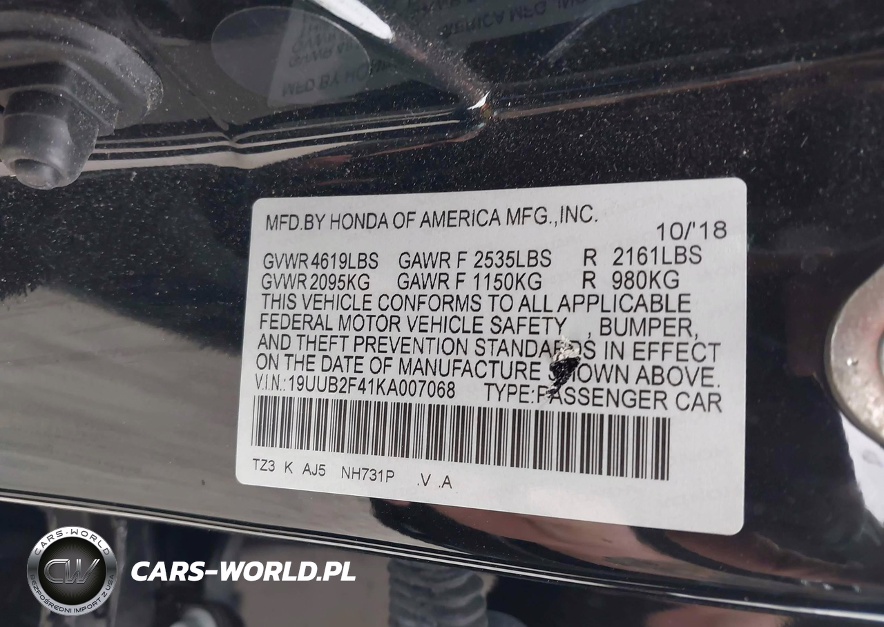 IAAI Nr: I-44520785 VIN: 19UUB2F41KA007068 Port: Houston, TX