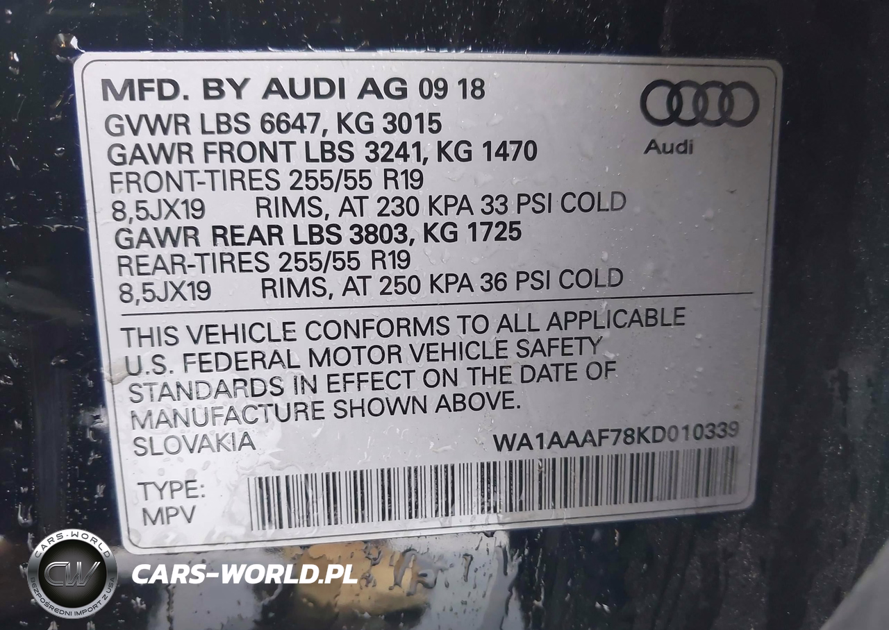 IAAI Nr: I-44520915 VIN: WA1AAAF78KD010339 Port: Savannah, GA