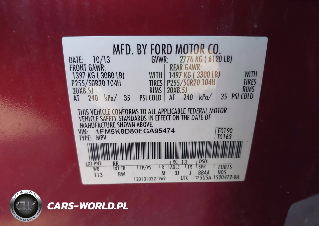 IAAI Nr: I-44521673 VIN: 1FM5K8D80EGA95474 Port: Indianapolis, IN