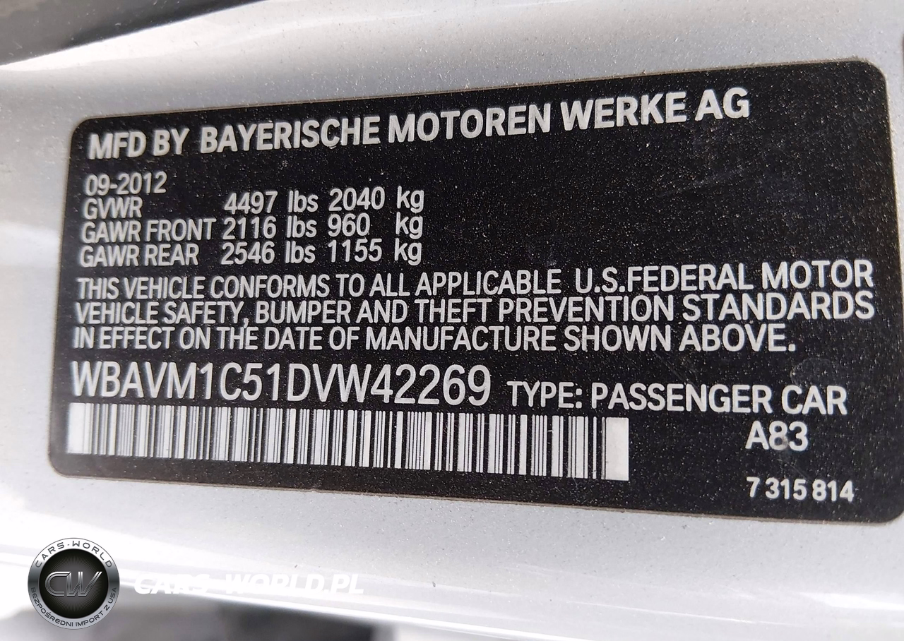 IAAI Nr: I-44522697 VIN: WBAVM1C51DVW42269 Port: Houston, TX