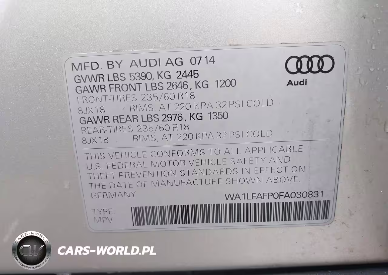IAAI Nr: I-44522789 VIN: WA1LFAFP0FA030831 Port: Savannah, GA