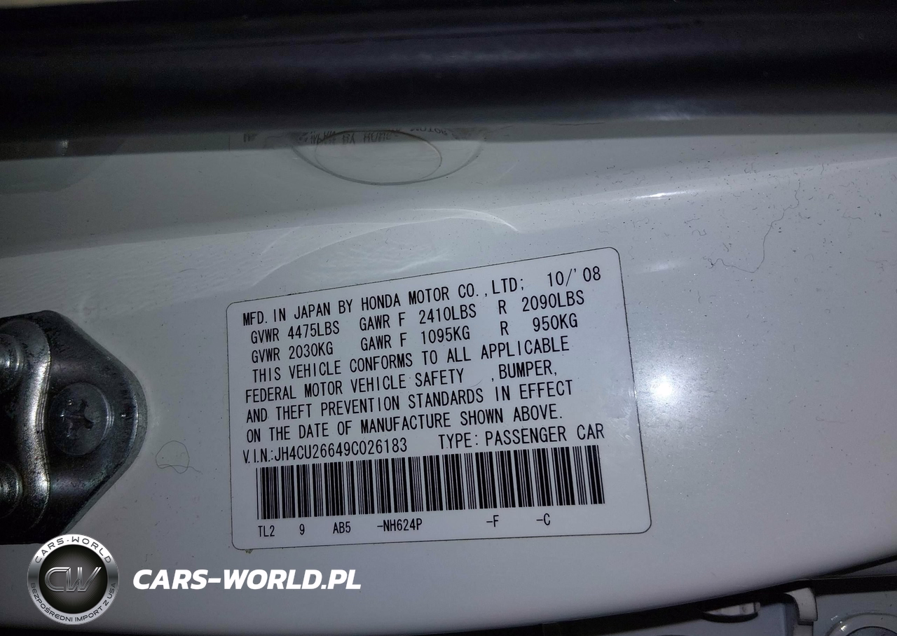 IAAI Nr: I-44523397 VIN: JH4CU26649C026183 Port: Los Angeles, CA