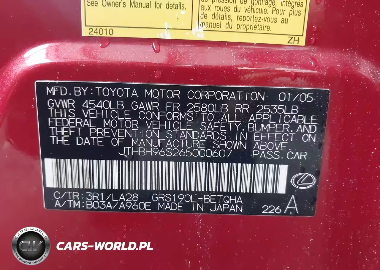 IAAI Nr: I-44524052 VIN: JTHBH96S265000607 Port: Savannah, GA