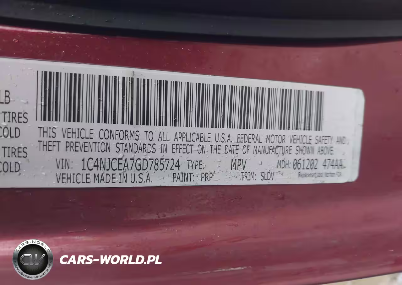 IAAI Nr: I-44524262 VIN: 1C4NJCEA7GD785724 Port: Indianapolis, IN