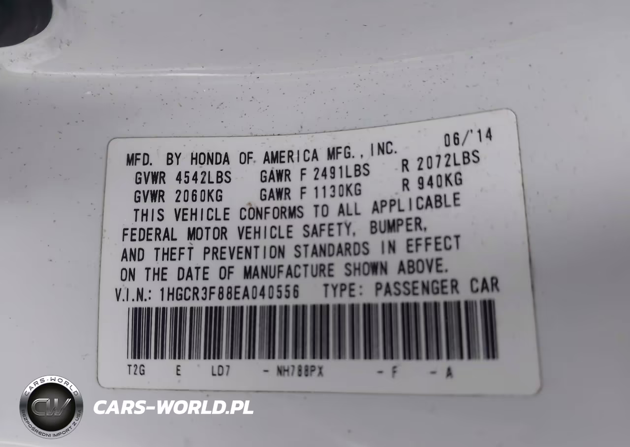 IAAI Nr: I-44524503 VIN: 1HGCR3F88EA040556 Port: Elizabeth, NJ